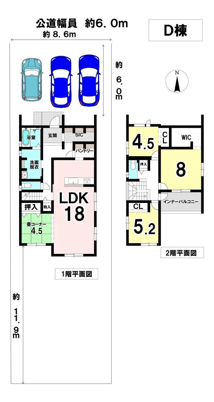 土地面積 262.3㎡(79.34坪) 接道 北側(公道)幅 約6.0m 間口 約8.60m